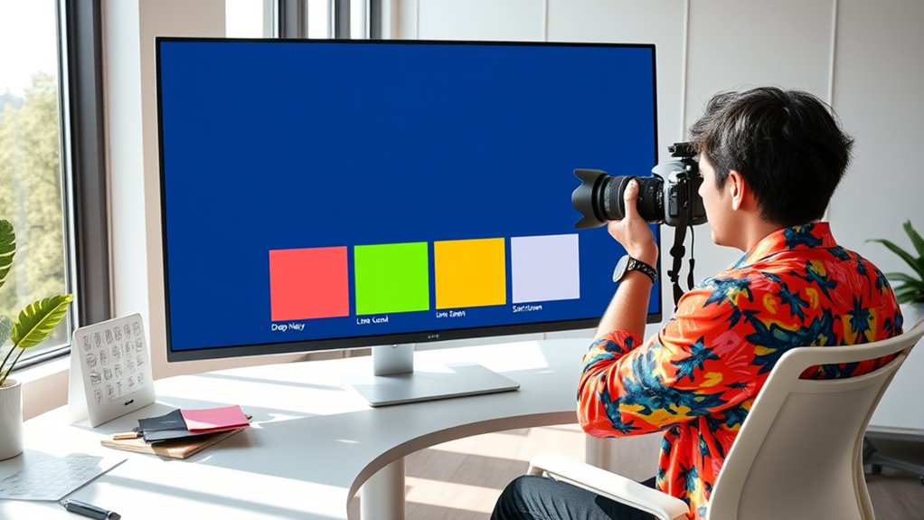 Imagine turning a blurry lens into crystal clear vision—that’s what tools like WebAIM’s Color Contrast Checker and Stark do for your design. They help you guarantee color contrast is sufficient for those with color blindness, making your palette inclusive. You can also use Adobe Color and Color Oracle to test and create accessible color schemes, giving everyone a seamless experience regardless of visual impairments.