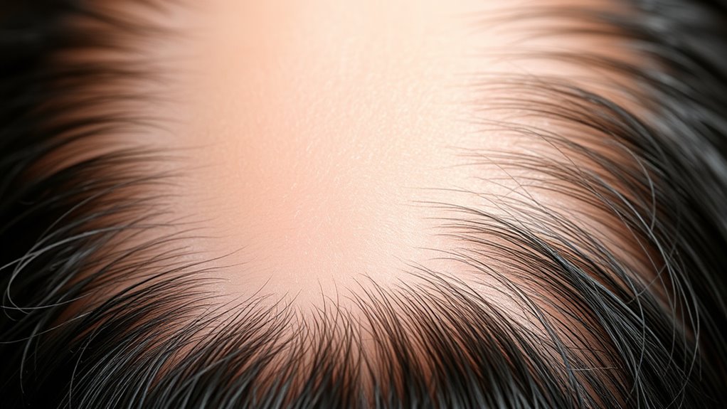 Think of scalp treatments like a shield, guarding your hair’s future. While some scalp treatment myths suggest they can fully prevent hair loss, they mainly support hair loss prevention by nourishing your scalp and boosting circulation. You can’t stop genetics, but with consistent care, your scalp stays healthy and vibrant. Keep in mind, treatments strengthen your foundation, helping your hair grow strong, resilient, and less prone to falling out.