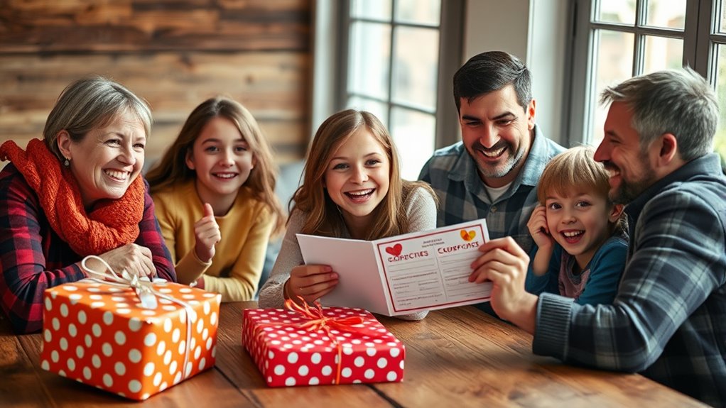 You should choose age-appropriate adventures that match each recipient’s interests and milestones. For kids, consider zoo visits or theme park days, creating memorable milestones. Teenagers might enjoy adventure sports or concert tickets, while adults could appreciate cooking classes or weekend getaways. Seniors often cherish relaxing experiences like spa days or scenic train rides. Tailoring these experiences guarantees they’re meaningful and memorable, making every milestone special and unforgettable.