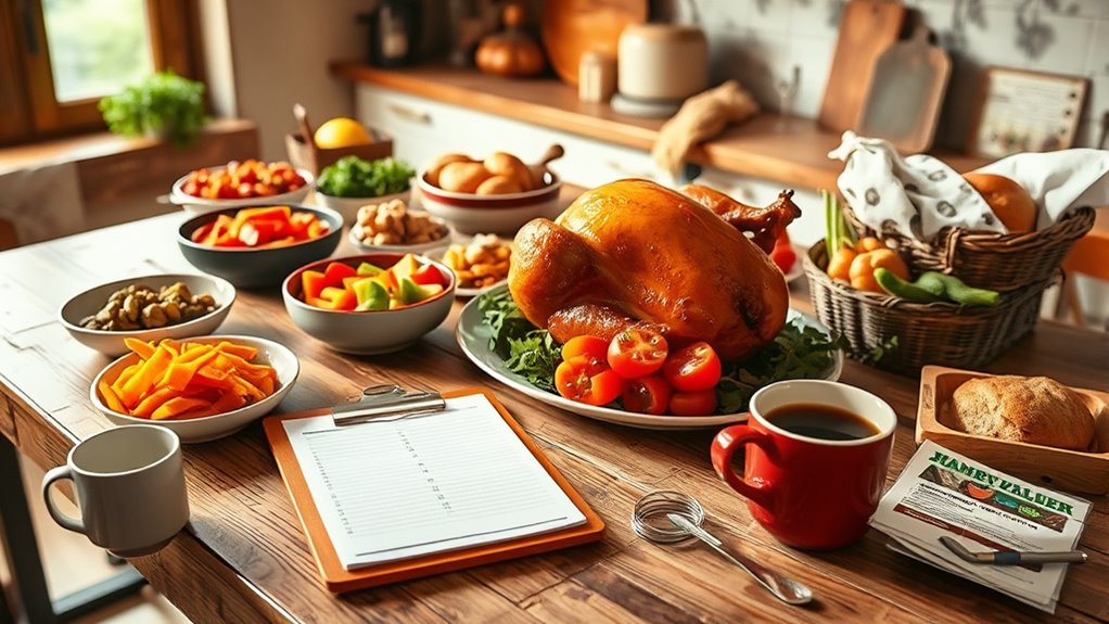 Cost comparison is your best friend when it comes to sticking to a budget. Take some time before shopping to compare prices at different stores or even online. Many grocery apps and websites offer price matching or discounts, so you can take advantage of sales and special offers. Keep an eye out for bulk buying options on staples like stuffing, canned vegetables, or spices, which often reduce costs in the long run. Don’t forget to check store flyers for weekly deals or coupons that can help you save considerably. Making a detailed shopping list based on your meal plan and sticking to it helps prevent unnecessary purchases. Remember, it’s easy to get carried away with festive decorations and extras, but focusing on your core ingredients will keep costs manageable.