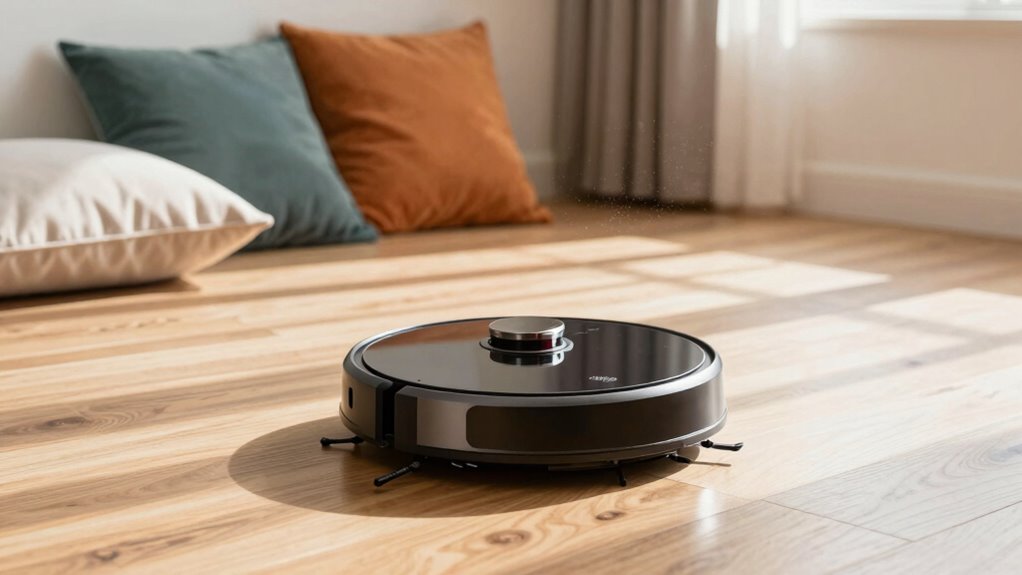 Think of your premium robot vacuum as a mini deep-sea diver, expertly exploring the depths of your carpets. Yes, it handles deep carpet cleaning and pet hair removal effectively. Many models now feature powerful suction and specialized brushes that dig into fibers, pulling out embedded dirt and hair. This means you can enjoy spotless carpets without lifting a finger, as your vacuum tackles even the toughest spots effortlessly.
