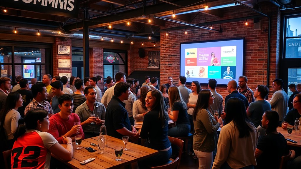 Imagine stepping into a vibrant local event where virtual meetups come alive through augmented reality. Technology enhances offline interactions by creating immersive experiences, making connections feel more real and engaging. You can use augmented reality to share digital badges or interactive displays, sparking conversations. Virtual meetups bridge online and offline worlds seamlessly, helping members feel connected even before they meet, fostering stronger bonds and a lively community atmosphere.