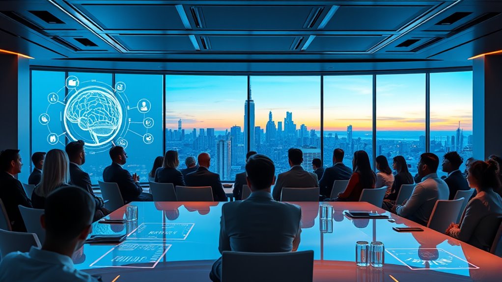 Imagine AI as a garden that, if tended well, transforms society. Long-term, AI adoption drives societal transformation by reshaping jobs, communication, and ethics. Automation ethics guide responsible growth, ensuring benefits outweigh risks. Without careful oversight, society risks losing jobs or privacy. Your role is to advocate for balanced AI policies, so this technological garden flourishes, enriching lives while safeguarding core values for generations to come.
