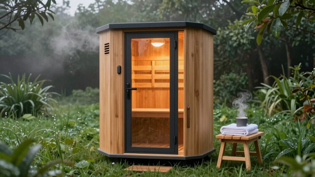 Think of your portable sauna as a trusty ship steering weather’s unpredictable seas. You can use it outdoors in most weather conditions because of its outdoor durability and weather resistance. However, avoid storms or extreme conditions that could compromise its integrity. While it’s built to withstand wind and rain, always check the manufacturer’s guidelines to guarantee safe, enjoyable use no matter what Mother Nature throws your way.