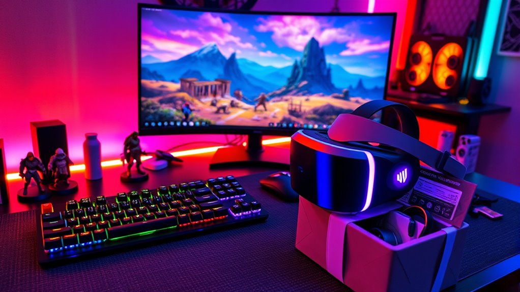 Ever wonder how much to spend on the perfect gaming gift? Setting a clear budget is key to narrowing down options that suit different price ranges. Whether you’re looking at budget-friendly accessories under $20 or high-end gaming consoles over $100, knowing your limit helps prevent overspending. It’s also important to think about the recipient’s gaming habits and preferences—this makes sure your gift aligns with their interests and comfort zone. Keep an eye on seasonal sales and discounts, which can make premium gifts more affordable without sacrificing quality. Establishing a budget guarantees that your gift remains affordable while still being meaningful, making your present both thoughtful and practical. With these tips, choosing the right price range becomes a straightforward part of your gift-giving process.