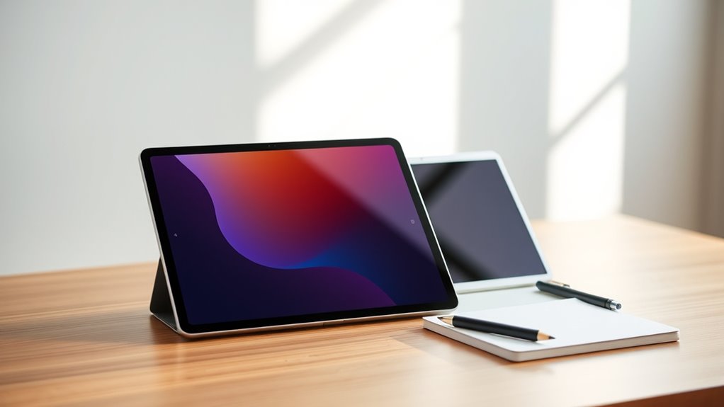 If you’re choosing between the iPad Pro 2025 and the iPad Air for school, I’d consider your needs carefully. The Pro offers top performance, a larger display, and better multitasking—great for demanding tasks and creativity. The Air is lighter, more portable, and perfect for everyday studying and entertainment. Both are great options, but your choice depends on whether you prioritize power or portability—keep going to see which suits you best.