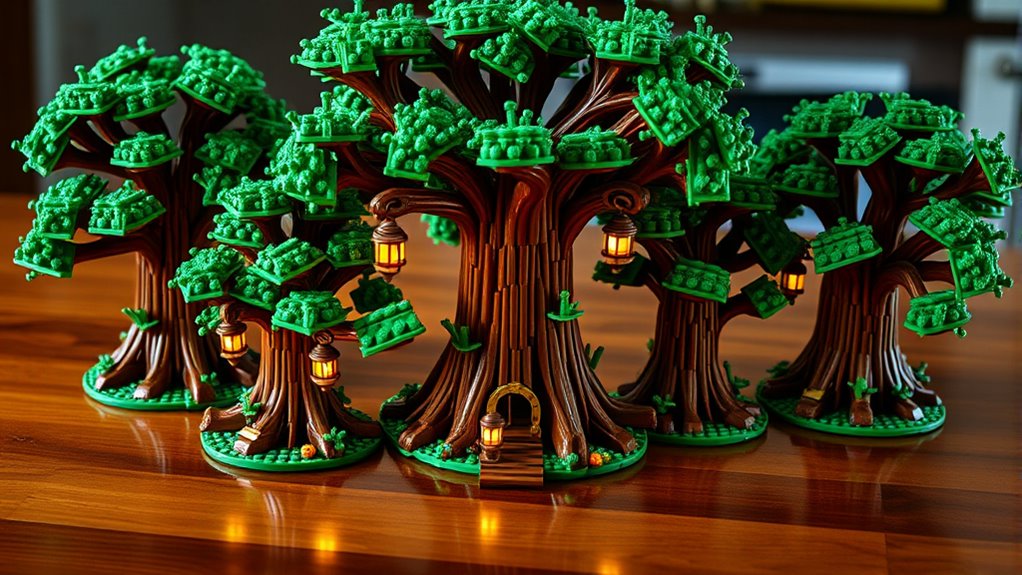 Lighting and display options can considerably enhance the visual impact of your Lego Zelda Great Deku Tree set, making it more vibrant and eye-catching. Incorporating LED lighting kits can bring out intricate details and add a dynamic glow, especially in low light. Choosing a clear acrylic display case not only protects your build from dust and damage but also allows it to be admired from all angles. Ensuring the lighting kit is compatible with your specific set guarantees seamless installation and perfect effects. Multi-color or adjustable lighting options let you customize the mood or highlight certain features, creating a more immersive viewing experience. Proper placement of lights and display accessories is key to accentuating the set’s best features and truly showcasing your build’s magic.