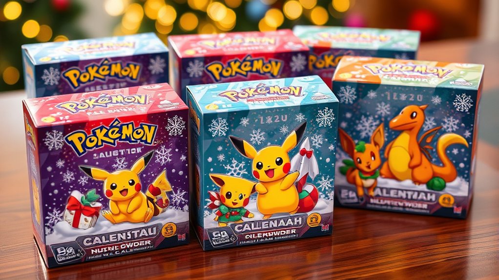 If you’re looking for the top Pokémon TCG holiday calendars of 2025 to celebrate the season, I’ve found five fantastic options. These include calendars with festive foil promo cards, booster packs, and fun accessories that make holiday gifting special. They’re perfect for fans of all ages, especially collectors and young players. Want to discover why these calendars stand out and which one suits your style? Keep going to find all the details you need!